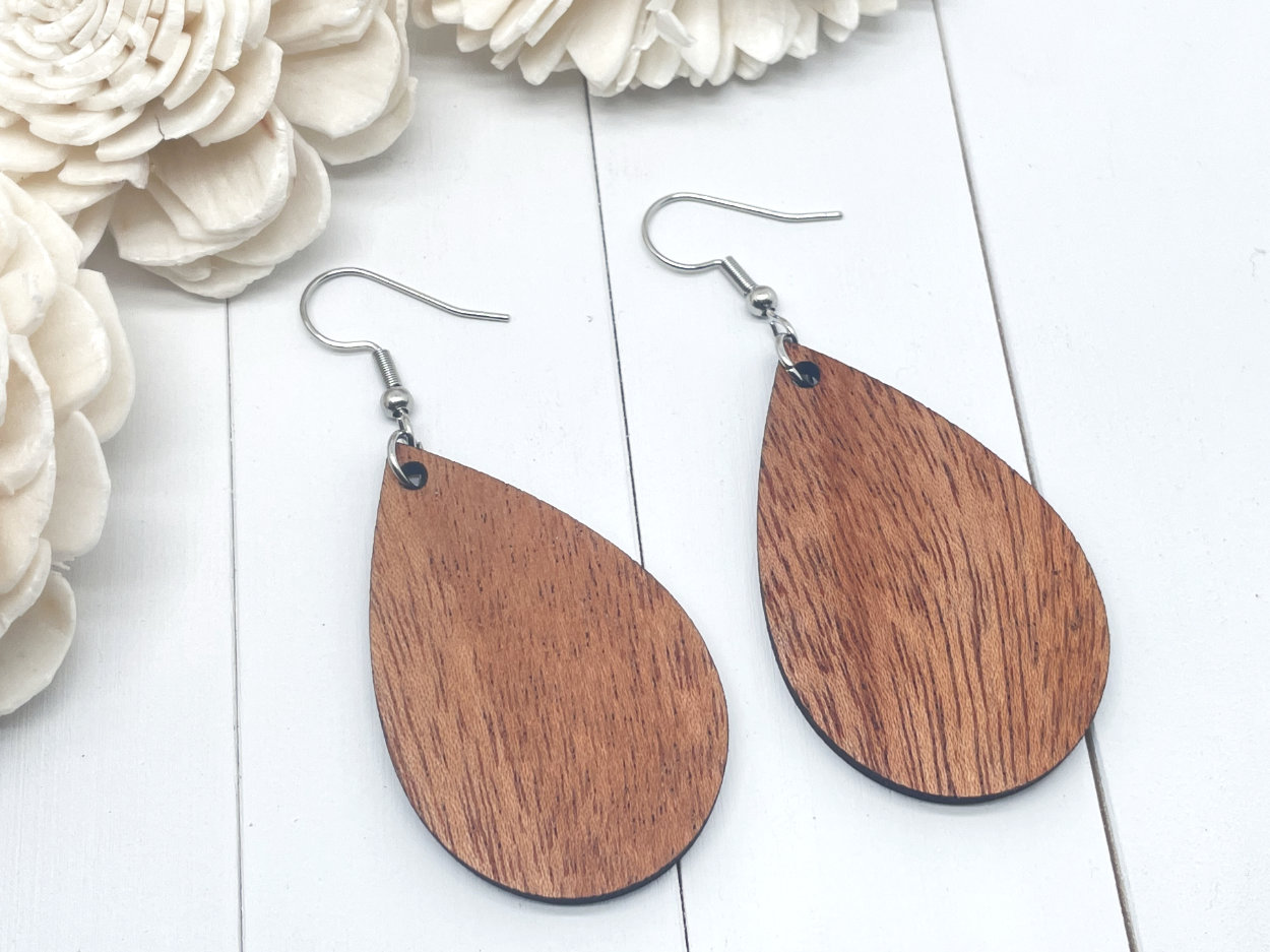 Solid Wood Teardrop Earrings